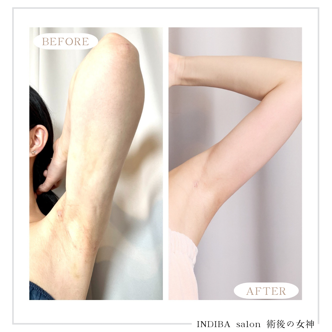 本日のお写真は二の腕脂肪吸引後、当店にて3回の術後ケアインディバ をなされたお客様です。
